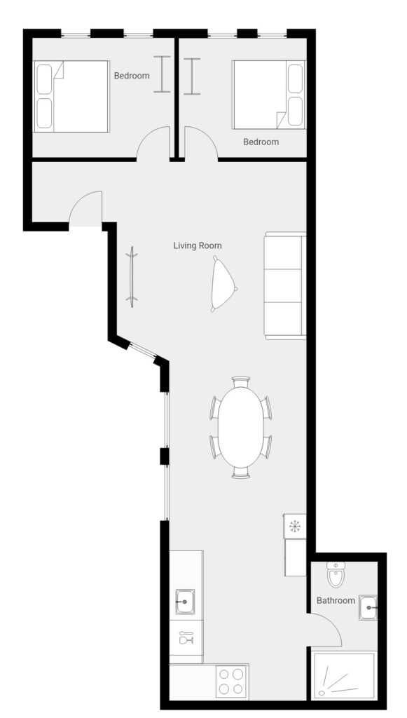 At each end of the living space, you’ll find two bright bedrooms facing Store Kongensgade, separated by stylish glass walls that let daylight flow throughout the apartment while maintaining privacy.