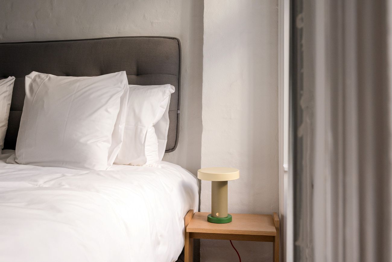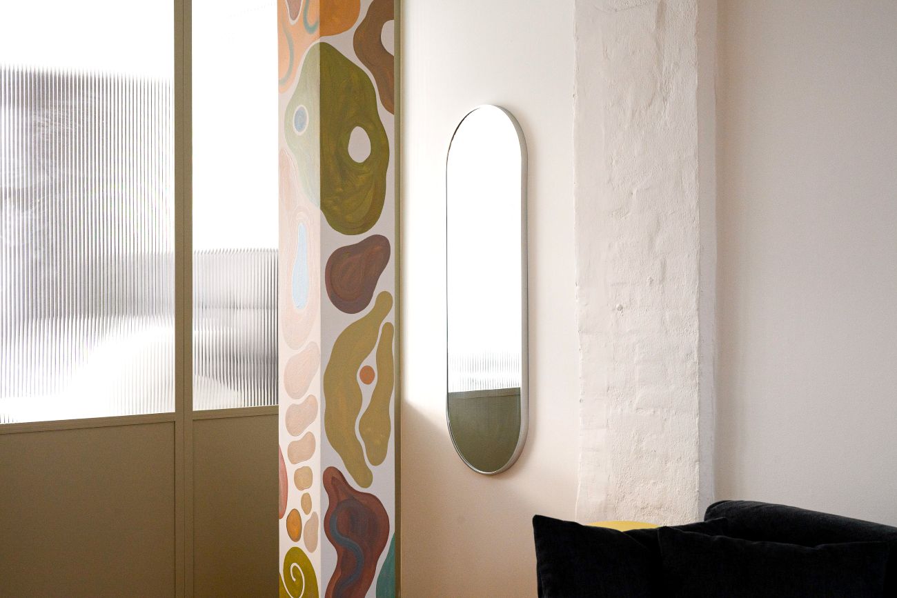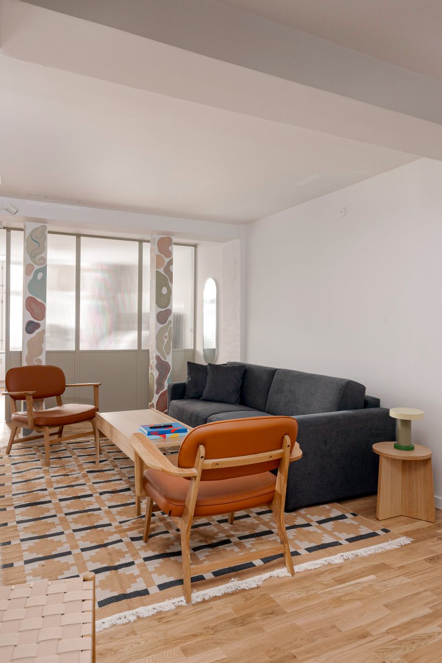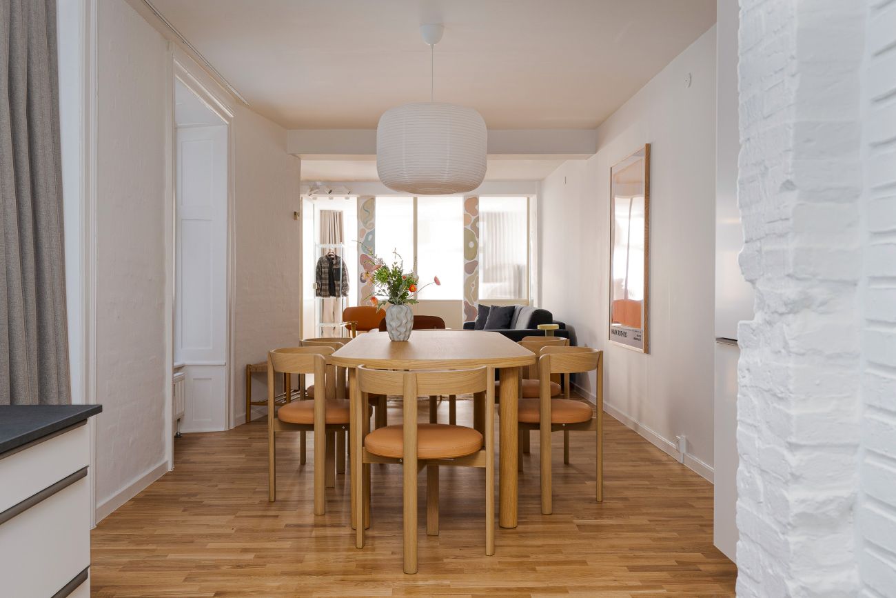 Designed by local creative duo SomeOtherWaves, this bright and stylish first-floor apartment blends cozy Nordic simplicity with a touch of Mediterranean warmth. Soft tones, light wood furniture, and hand-painted art on the living room pillars create a calm and welcoming atmosphere in the heart of Copenhagen.